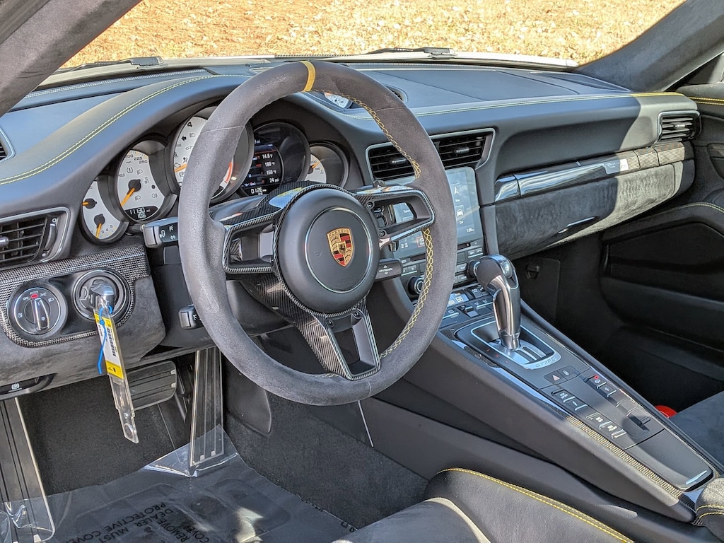 WEISSACH PACKAGE: carbon fiber front lid painted w/decorative stripes in exterior color, carbon fiber roof painted w/decorative stripes in exterior color, carbon fiber rear wing w/large PORSCHE logo (in black or silver color, depending on the exterior color), steering wheel trim and gearshift paddles finished in carbon fiber, additional plaque on cupholder cover w/Weissach package logo, headrests embroidered w/Weissach package logo and anti-roll bars and end links in carbon fiber (front and rear), Wheels: 9.5J x 20 Fr/12.5J x 21 Rr Magnesium, GT SILVER METALLIC, LEATHER INTERIOR PACKAGE W/CONTRASTING STITCHING: decorative stitching and embroidery, FRONT AXLE LIFT SYSTEM, BLACK, LTHR/ALCANTARA SEAT TRIM W/PLATINUM GREY STITCHING: leather interior, EXTENDED LEATHER INTERIOR PACKAGE DASHBOARD: the following covered in smooth-finish leather w/partially decorative stitching: dashboard end trim, windshield defroster panel, instrument surround (upper section), side defroster vents and center dashboard trim (upper section), BOSE SURROUND SOUND SYSTEM: 12 loudspeakers w/center speaker and subwoofer integrated into the vehicle body, fully active sound system w/a total output of 555 watts, BOSE Centerpoint 2 and SurroundStage and AudioPilot Noise Compensation Technology, PERSONALIZED CARBON FLOOR MATS W/LEATHER EDGING: set of two w/leather edging and stitching in a choice of color, INSTRUMENT DIALS IN WHITE, WINDOW TRIANGLE TRIMS IN CARBON FIBER, AUTOMATICALLY DIMMING INTERIOR & EXTERIOR MIRRORS: integrated rain sensor, EXTENDED INTERIOR PKG DOOR PANEL IN LEATHER/ALCANTARA, WHEELS PAINTED IN SATIN BLACK, SUN VISORS IN ALCANTARA, SEAT BELT OUTLET TRIM IN ALCANTARA, SPORT CHRONO PACKAGE: an analog stopwatch, a digital stopwatch and performance display, VEHICLE KEY PAINTED & KEY POUCH IN LEATHER, ILLUMINATED DOOR-SILL GUARDS IN CARBON FIBER: model logo illuminated in white, LIGHT DESIGN PACKAGE: additional dimmable ambient LED lighting in overhead console, door handle area, door storage compartment and front and rear footwells, SPORT CHRONO CLOCK DIAL IN WHITE, STORAGE COMPARTMENT LID IN ALCANTARA W/LOGO. Porsche GT2 RS with GT Silver Metallic exterior and Black interior features a Flat 6 Cylinder Engine with 700 HP at 7000 RPM*. Serviced here