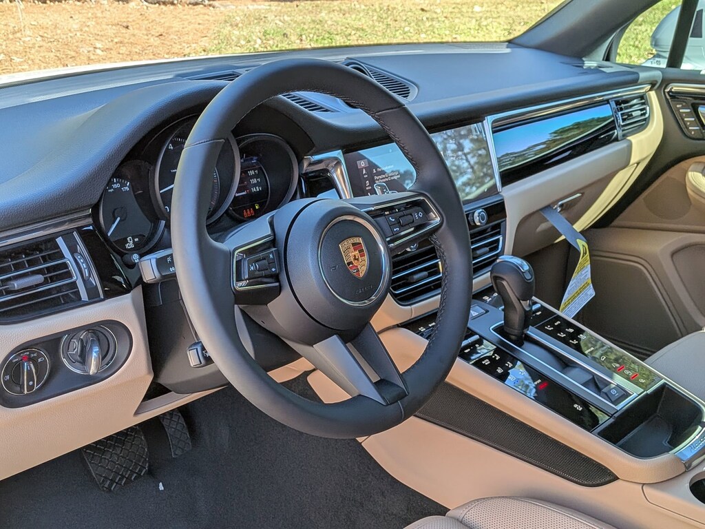 PREMIUM PACKAGE PLUS: Panoramic Roof System, Front Ventilated Seats, LED Headlights w/Porsche Dynamic Light System Plus, Rear Heated Seats, 14-Way Power Seats w/Memory Package, Lane Change Assist (LCA), SURROUND VIEW, TRAILER HITCH W/O TOW BALL, WHEELS: 19 MACAN DESIGN, SELF STEERING PARK ASSIST, HEATED STEERING WHEEL, BLACK/MOJAVE BEIGE, 2-TONE STANDARD SEAT TRIM, ELECTRIC STEERING COLUMN. Porsche Macan with White exterior and Black/Mojave Beige interior features a 4 Cylinder Engine with 261 HP at 5000 RPM*.